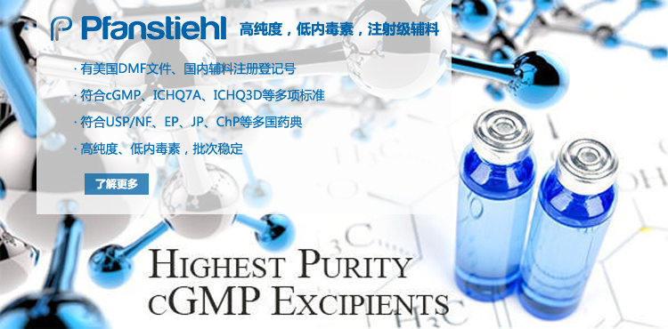 “熱烈祝賀Pfanstiehl的注射級甘氨酸Glycine(G-140)喜獲CDE登記號F20250000403, 這是Pfanstiehl產品獲得的第18個CDE登記號!”甘氨酸在醫藥輔料制劑中應用廣泛,, 可作為緩沖劑,增溶劑,穩定劑等,具有諸多優勢。Pfanstiehl秉承一貫高品質理念,為滿足全球生物制藥行業對于高品質甘氨酸的需求,隆重推出的注射級甘氨酸Glycine (G-140), 具有超高純度,超低內毒素,超低金屬殘留的特點,單獨檢測29種金屬離子,并且新增DNA,RNA,DNA酶,RNA酶和脂肪酶,亞硝酸鹽等多項質量指標的檢測,符合多國藥典規定(USP, EP, BP, JPE, ChP),可用于生物治療性藥物和疫苗的生產。產品信息:· 產品名稱:Glycine, High Purity, Low Endotoxin, Low Metals, USP, EP, BP, JPE, ChP (G-140)· 中文名稱:甘氨酸· 分子式:C2H5NO2· 分子量:75.07 g / mol· CAS號:56-40-6· 產品貨號:G-140產品特點: · 超高純度,超低內毒素,超低微生物含量,超低金屬雜質殘留· 質量指標新增DNA,RNA,DNA酶,RNA酶,脂肪酶和亞硝酸鹽檢測· 符合多國藥典:USP, EP, BP, JPE, ChP· 符合ICH Q3D標準· 符合GMP標準· 已獲DMF和CDE登記號 產品應用:· 緩沖劑· 穩定劑· 增溶劑如果您對Pfanstiehl注射級別Glycine G-140感興趣,歡迎聯系Pfanstiehl 中國區代理商北京西美杰科技有限公司獲得如下詳細的產品概況說明文件和測試樣品。Pfanstiehl Inc.最新產品系列如下,歡迎聯系北京西美杰科技有限公司獲取100g裝免費樣品。北京西美杰科技有限公司為Pfanstiehl中國代理,為客戶提供完善的技術支持與售后服務。歡迎撥打西美杰客服電話400-050-4006或者登陸網站www_xmjsci_com.chh1168.com了解更多信息。 更多>